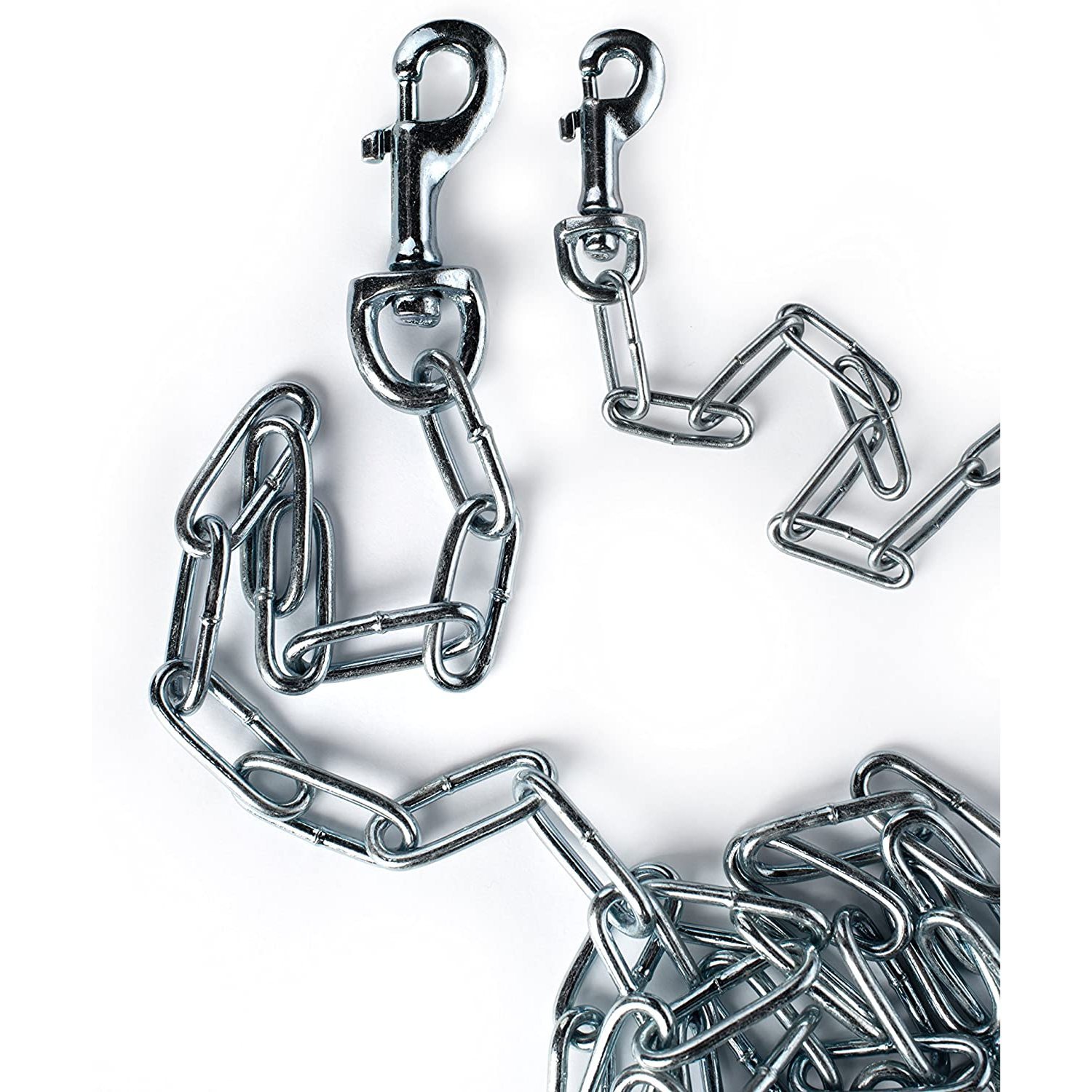 Prevue Pet Products medium-duty 15Æ tie-out chain 2114 is designed for dogs up to 55 lbs. Zinc plated welded oval links are strong, ensuring your dog stays safe and secure. Premium quality die-cast iron swivel bolt snaps at both ends connect easily and prevent tangling. Medium duty tie out chain is 15 foot long and 2.5 mm in diameter.